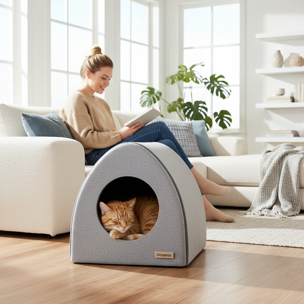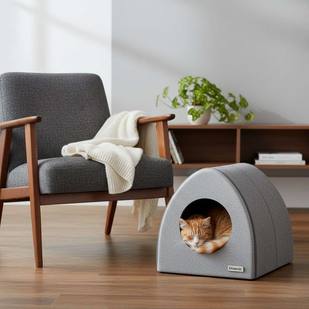 Give your feline friend the ultimate sanctuary with the Omzenix Cozy Cat Hideaway. This modern cat cave provides a warm, secure, and private space for napping and relaxing, while its stylish design seamlessly blends with your home decor. It’s the perfect retreat for your cat to feel safe and comfortable.
